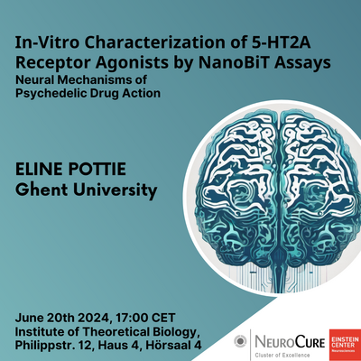 As part of the ongoing Student/Postdoc-Run Speaker Series (SPRSS), and on behalf of the Neural Mechanisms of Psychedelic Drug Action Group, Dr. Eline Pottie from Ghent University will give a talk titled "In-Vitro Characterization of 5-HT2A Receptor Agonists by NanoBiT Assays."